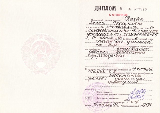 Квалификация: воспитатель детских дошкольных учреждений